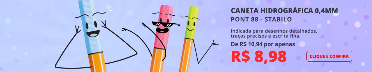 Mais cor, por favor, tem sim um porquê de eu ser tão conhecida. Deixar mais colorido o dia de todos não é pra qualquer caneta, sabia? Colorir aquele dia sem graça, transformar estudos e dar aquele ânimo pra encarar o caderno são só algumas das minhas especialidades. Quando se tem uma Point 88 na mão, pode ter certeza que um mundinho colorido se abrirá pra você!
